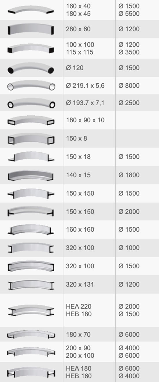 • гибка труб из нержавеющей стали и сплавов различного диаметра с различной толщиной стенок по радиусу, полос плашмя и на ребро, квадратов, уголков полкой внутрь и полкой наружу.